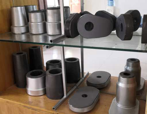 滑板是以氧化鋁原料如板狀剛玉、電熔剛玉、莫來石、特級礬土等為主要原料,引入碳素材料如磷片石墨、碳黑、瀝青、活性碳等,并添加其它少量材料如金屬硅、金屬鋁、碳化硅、碳化硼等,以酚醛樹脂作結合劑,經配料、混合,高壓成型,高溫處理,再經過加工而成。該產品強度較好,熱震穩定性好,抗侵蝕,耐沖刷,能滿足不同鋼種的使用要求。